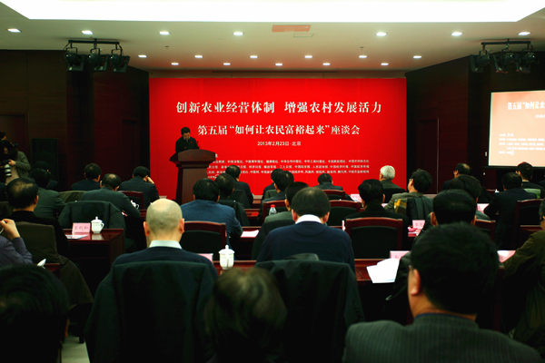 2月23日,由农民日报主办、永业集团独家支持的第五届“如何让农民富裕起来”座谈会在北京召开。研讨会围绕“创新农业经营体制,增强农村发展活力”这个主题,详细解读今年“一号文件”,重点分析农民收入在“九连快”之后保持持续增收所面临的困难挑战和发展机遇。与会领导、专家提出,要深入贯彻落实今年的中央一号文件,巩固农民增收的好形势,路径之一就是必须在农业内部挖潜,创新农业经营体制,增强农村发展活力和农民增收的内生动力。