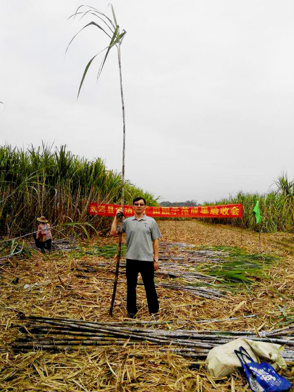 永业科技服务技术帮助广西武鸣甘蔗丰收,样板种植甘蔗测产平均株高3.77米