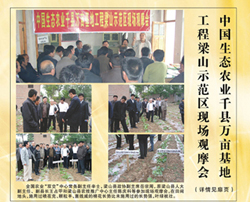 2006年5月27日上午,中国生态农业千县万亩工程示范基地观摩会在梁山县农业技术推广站农三新服务站会议室召开。全国农业高新技术成果产品交流交易中心常务副主任辛士,梁山县政协副主席岳宗周,原梁山县人大副主任、梁山县人民政府副县长王占甲,梁山县农业技术推广中心主任陈庆科参加会议并讲话。应邀参加的还有梁山电视台、中国农业市场报、农产品加工杂志等多家新闻媒体单位。梁山县的40多户示范户也参加了会议并协同领导一起到各乡镇的示范田观摩。