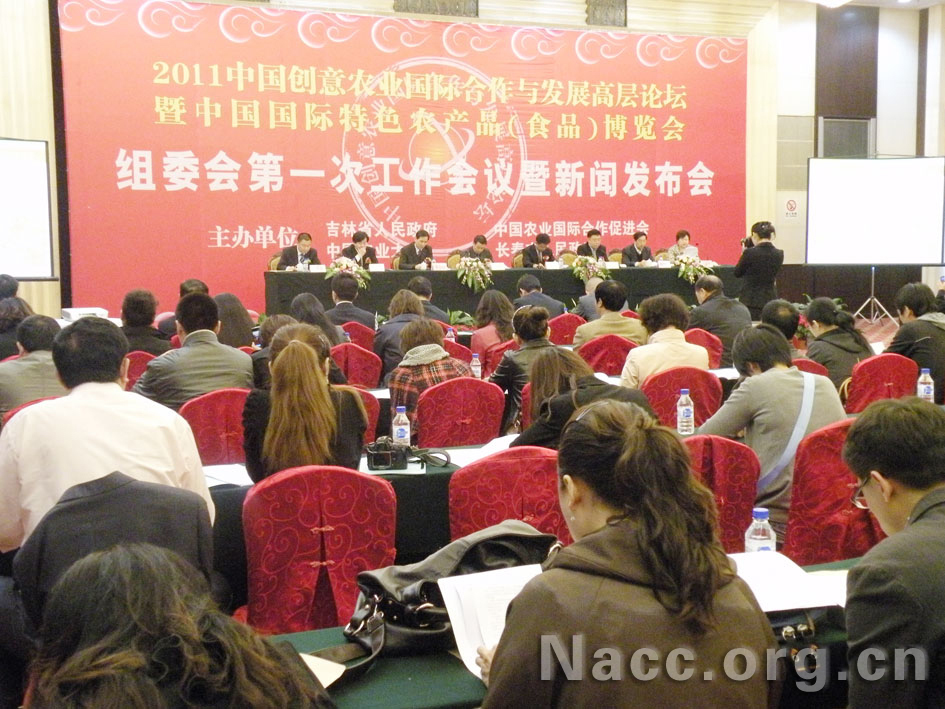 由中国农业国际合作促进会等相关单位和吉林省暨长春市人民政府联合举办的“2011中国创意农业国际合作与发展高层论坛”将于2011年9月17日在长春国际会展中心举行,今天在这里召开组委会第一次工作会议暨新闻发布会,在此,我代表长春市人民政府对来自北京的论坛主承办单位的领导和嘉宾以及新闻界的朋友们表示热烈的欢迎!下面,我就在长春办好“2011中国创意农业国际合作与发展高层论坛”讲三个问题: