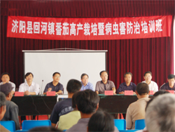番茄黄瓜辣椒高产栽培技术和病虫害防治现场培训会分别在济阳县三旺友和酒店、回河镇政府、开发区王荣村举行