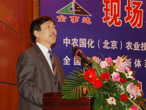 2009926-27日,“中国农业科技下乡专家团绥化行“黑、吉高新技术成果推广与优秀经营者”现场培训会暨金事达公司新技术产品订货会在绥化市沃必达金长城酒店隆重的召开。此次会议隆重热烈、意义非凡。出席本次会议的有中国科技部原副部长、中国技术市场协会会长、中国农业科技下乡专家团团长韩德乾,中国农业大学原副校长李青山教授,中农国化(北京)农业技术推广服务中心吴一副主任,中国农业科技下乡专家团秘书长、中农国优(北京)科技推广中心辛士常务副主任,中国农业科技下乡专家团植物营养与资源专家吴玉光研究员,中国农业科学院微生物研究室范丙全研究员,黑龙江农业技术推广站副站长李炯道,黑龙江省绥化市人大常委会主任王洪烈,绥化市人民政府副市长李宝山,绥化市政协委员会副主席统战部部长王景顺,黑龙江个私协会王月明秘书长,黑龙江金事达农业科技开发有限公司总经理范友,中农国优(北京)科技推广中心黑龙江办事处王卓奇常务副主任,中国农业科技下乡专家团黑龙江专员敖奎等。参会人数上千人,其中来宾近二百人,嘉宾及各区域经销商七百余人,省、市、电视台及各大媒体报社各大网站共十余家。大会协办单位有绥化市工商联、绥化市个体私营企业协会、中农国优(北京)科技推广中心、中农国化(北京)农业技术推广服务中心、全国化工农化服务创新发展联合办公室。支持单位有中国农业科技下乡专家团、中国农村合作组织发展研究专业委员会、全国农业高新技术成果产品交流交易中心。媒体支持有科技日报、农民日报、中国化工报、中国化肥网、 黑龙江电视台、黑龙江日报、黑龙江化肥信息网、绥化电视台、绥化日报、绥化晚报。