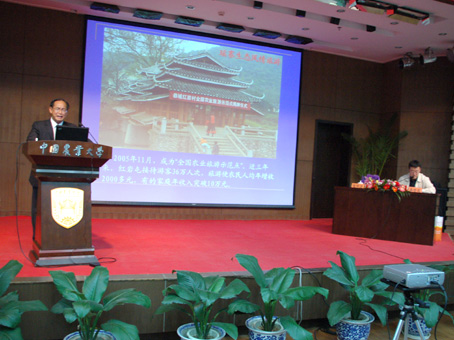 张明沛从世界上生态环境的压力引出了生态环境治理的紧迫性,并从当今国际市场的贸易要求和社会主义新农村建设两个方面阐述了发展生态农业的必要性。他还详细地向同学们介绍了“恭城模式”。张明沛说,“恭城模式”是我国最早将养殖、沼气、种植三个环节的物质和能量流动,作为一个相互关联、共同促进的有机整体构建的农业生产体系。“养殖+沼气+种植”这个三位一体的生态农业模式使恭城的生态和经济得到了很好的发展。张明沛欣慰地说,恭城县生态农业的发展实现了良性循环,带动了广西生态循环农业的新发展。