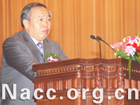 原科技部副部长、中国技术市场协会会长韩德乾做了题为“发挥技术市场作用,促进创新型体系建设”的报告。韩部长首先对前来参会的众位会员表达热烈欢迎。韩部长说:“中国技术市场召开这次年会,是为了贯彻党的十七大精神,贯彻刚刚闭幕的全国人大、全国政协第十一届会议精神。会议进行了换届选举,选举产生了第四届协会领导班子和常务理事、理事人选。昨天全体代表在京西宾馆听取了中国中共中央政策研究室和国务院发展研究中心的两位领导做的高层报告,并分别举办了区域经济与技术转移论坛和提高自主创新能力,推进节能建筑发展论坛,举办了中农国优(北京)科技推广中心成立两周年系列纪念活动。