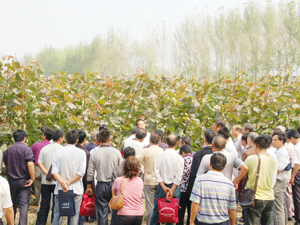8月30日,由全国种(养)能人培训基地活动办公室、中农国优(北京)科技推广中心共同组织的彩色速生杨种植发展研讨及基地现场观摩会在河南省新乡市九州宾馆成功召开。出席此次研讨会的领导和与会专家有农业部全国农技中心陈海章处长,中国农业科技下乡专家团植物营养与资源专家吴玉光研究员,北京生态工程监理、北京农林科学院林业果树研究所所长赵毓桂研究员,北京农林科学院林业果树所研究室主任白金研究员,中国农业科技下乡专家团秘书长、中农国优(北京)科技推广中心常务副主任辛士研究员,河南省农业厅经作站王玮研究员,河南省辉县农业产业化办公室杨永刚主任,延津县林业局何建民总工等出席研讨会和现场观摩;河南省辉县林业局郭平亮站长主持了会议;中农国优(北京)科技推广中心彩色速生杨项目部刘慈新经理介绍了彩色速生杨发展和种植情况。以及来自山东、内蒙古和新乡市各区县近一百五十位农民专业合作社代表和种植大户参加了会议。