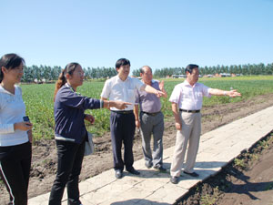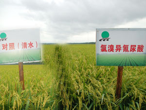 853农场闫立春主任陪同考察了颗粒丰、氯溴异氰尿酸在水稻上的应用试验。试验结果表明颗粒丰在水稻上的增产趋势、氯溴异氰尿酸在水稻上的防治效果十分显著。