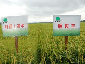 通过对上述地区田间试验的考察,可以初步看出颗粒丰在黑龙江东部地区的水稻、玉米、大豆上都具有可观的增产效果,特别是在大豆上的应用更为明显,具有广阔的推广前景。
