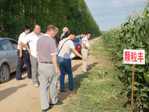 在854农场农业部长李志强的带领下考察了颗粒丰在大豆上和陈志前地里水稻上的应用情况,在852农场生产部部长张秀国和科技站杨明生站长的陪同下,考察了852农场科技站做的颗粒丰在玉米、大豆上的试验, 852农场农资站站长王维利介绍说,今年东北干旱,喷施颗粒丰的大豆耐旱性特别强,对病害的防治作用非常好,预计施用颗粒丰的大豆比农民习惯的栽培方法能增加2成以上,效果十分明显。