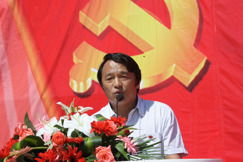 吴子申:各位领导,同志们上午好,非常高兴我们在武川的基地能够在这样的一个隆重而热烈,庄严而神圣的气氛中为我们中共共产党成立九十周年进行纪念,同时也为我们新加入团体的八位同志进行一个庆祝,作为一个入党十年的党员我的心情无比的激动,再回来呼市的飞机上我在想从我参加工作一直到现在,无时无刻不是沐浴在党的教育关怀之下。刚才我们跟工商联的高主席在讨论,我们在美国路演的过程中曾经有基金问我是不是共产党,我们很奇怪为什么要问这样的问题,最后的答案说,你是共产党我就给你投钱,所以我想,我们永业集团作为中国三农事业的一个先锋与代表,我们在用自己的行动践行着我们在党旗下庄重而神圣的事业,我们用自己的青春书写着我们的价值。我想在这个团队里,在过去我们党走过了九十年,从它的成立一直到我们的建国建设,一直到我们的改革开放的30年,我们每一个艰难的时刻不管是地震还是洪水,还是各种灾害,所有的事情没有能够难倒共产党员的,我们在党的正确光荣的领导下,我们走过了九十年,我们伟大的祖国成立了六十多年,在这个不平凡的历程中,我们一代又一代的锻炼提高,我想作为今年这样一群长在红旗下的青年人,我们已经没有了过去老一辈革命家对创业艰难的亲身的体会,但是我们更加有一种守业的责任,我们在美国上市之后回来的第一件事就是在我们争先创优的刘怀北先生的指导下做了一个党委成立的工作,因为永业集团在全国已经发展成的一个800个县2600个网点,无时无刻不需要一个政治强有力的精神支柱,尤其是我们在领导的一个高素质的文化队伍,这里面有硕士有博士,很多的同志都非常的年轻,都是80后,90后,这对我们提出了更高的要求,怎么样带好这支队伍,让大家能够守住我们这块阵地,让大家永远跟党走,这是时代赋予我们的责任与义务。我经常跟领导班子在研究,我们如何能够把这支队伍带着走,带的好,保证能做对,我们在中国走出富有中国特色的社会主义,在共产党的领导下真正取得我们良好的成绩,我们想当我们共产党的旗帜高高的飘扬在纽约的华尔街的时候他们认识到什么样的好企业,是在什么样的团队和团体之下领导的企业是真正的好企业,这支队伍不仅可以创造良好的经济价值,更主要他们有一种精神,这种精神是不为名不为利,只是为了一种信念。在西方人的眼里这帮人就像傻子一样,但我们宁可做这样的老黄牛,因为在中国需要我们用自己的行动,用自己的知识,用自己的青春把我们的党委,把我们的中央进行分忧,用我们自己的实际行动解决多年困扰我们的三农问题,解决农民的买难卖难问题,怎么样用自己的行动帮助我们八九亿的农民早日富起来,我们连续举办了三届如何让农民富裕起来的论坛,今年我们把这个旗帜交给了农民日报的手里,今年在人民大会堂我们做了高规格的会议,大家对永业做的一些基础工作,社会上得到了广泛而正面的认可,我们辛辛苦苦十年,终于收获了社会各界对我们的认可,但有一点大家从来没有意识到,永业的一切成绩来自于何方?今天我正式的告诉大家,只是因为有共产党的正确领导,因为我们这群人,从我们参加工作,从我们步入到学校,从我们一直走到工作岗位我们一直在坚守的诺言,坚守着一个誓言就是让我们的旗帜,让我们的先烈流汗、流血换来的新中国我们的旗帜永远的现鲜货,用鲜血染红的颜色是不会变的。因为它代表着中国最先进的群体,这样一个群体有责任有义务带着我们所有的员工队伍、社会群体奔向富裕,达到小康,我们正在用自己的行动践行着我们曾经走过的一些路,同时,向世人昭示共产党人可以做到一切,可以做到最优秀。