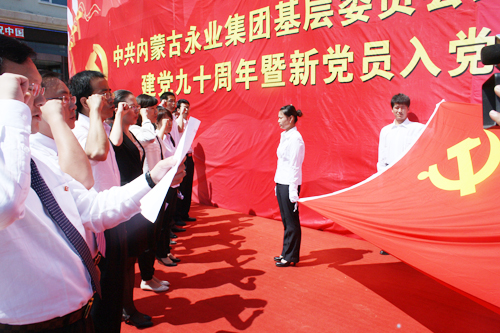 今天非常的感慨,因为我们有八位新同志,他们都是在永业这个大家庭里工作了三年以上的同志,从我们学校毕业都在行行业业取得了非常大的成绩,今天他们能够主动的提出来,通过我们组织连续几年的考察与认真的考核,虽然我们的党委成立的比较晚,但是我们的党支部是建立在2001年的,我们之所以能够有机会加入内蒙古工商联就是因为我从机关出来没有地方交党费,因为找娘家找到了工商联,然后我们成为了工商联的会员,在这里我们终于找到了民营企业的娘家,在工商两的正确领导下,在自治区党委统战部的正确领导下我们一步一步的完成了我们的路径。尤其是我们罗生祥老书记在家我们马上把他请了回来让他抓党建工作,在我们最迷茫的时候,终于让我们找到了娘家,我深深的代表党委谢谢所有的领导,包括统战部、自治区党委对我们关心与关怀。